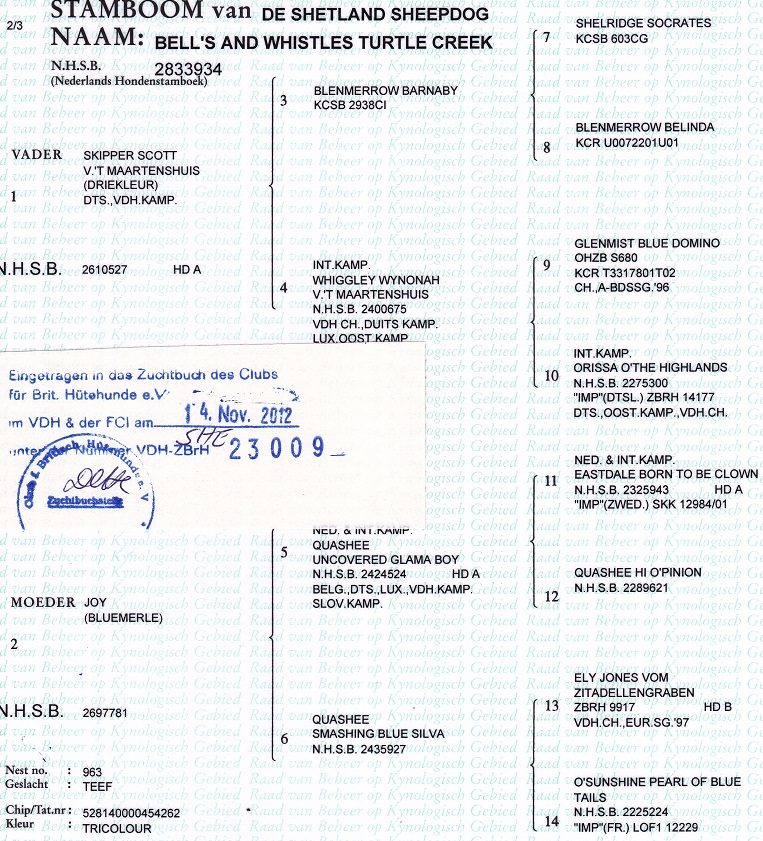 V 4 (von 8 Shelties) - Richterbericht vom 22.01.2012: